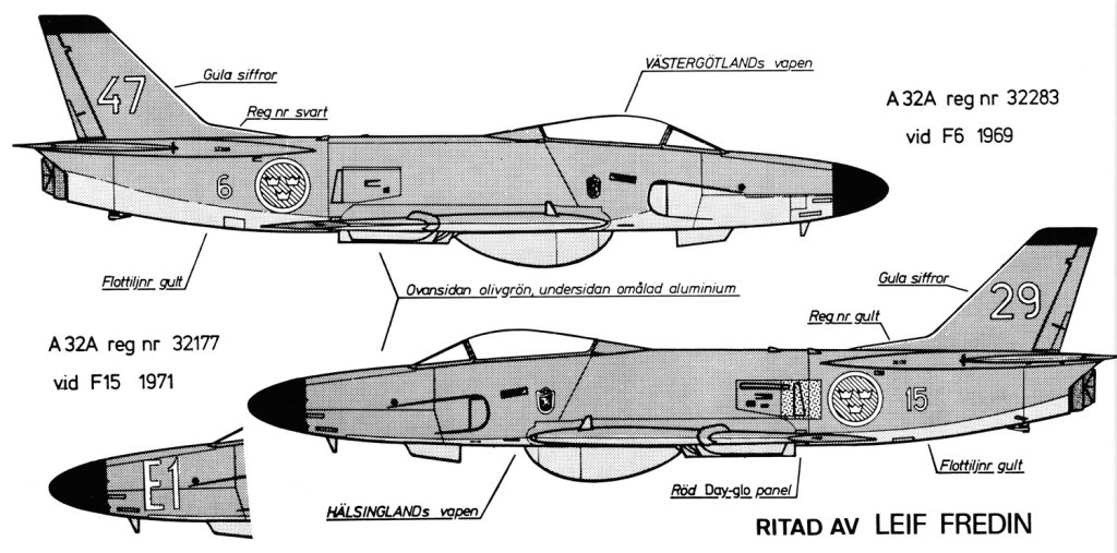 I samband med 1969 års VM i militär flygfemkamp i Finland deltog Sverige med tre A 32A ur F 15 vilka i nosen märkts med ett vitt ”E” följt av siffrorna 1, 2 och 3 (se bild nr 1 ovan). De aktuella flygplanen var: