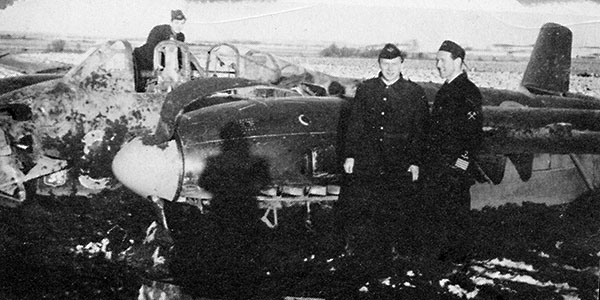J hade tillsammans med sin signalist, furir S, tilldelats gul Caesar, ett flygplan som kommit från stor översyn och hade två helt nollställda motorer vilka startade perfekt och spann som två tigrar, eller vad man skall likna två ystra Daimler Benz DB-605-motorer vid.
