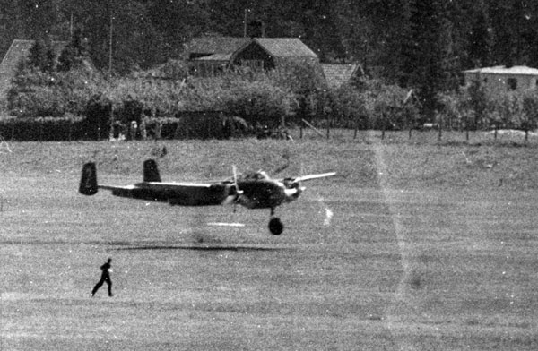 | 18126 | 441003 | 500117 | S 18A. Totalhaveri 491116 vid Avabådan, Tynderösundet, Klingerfjärden, 10 km NO Alnön. Vid landningsövningar med hjälp av radiofyrar och pga väderförsämring misslyckas 2 landningsförsök vid F 21 och ff beordras till SASH/Sundsvall (Härnösand). Ff avbryter landningsförsöket pga låga moln och omgivande höjder. Då bränslet börjar tryta, ansätts nödlandning. Huvarna fälls och fs tar plats i fsig knä. Det blir en mjuk landning med låg stjärt. Planet flyter 4 min innan det sjunker och besättningen (Andersson, Bergström och Malmgren) räddas av fiskare. Fpl bärgas och skänks till yrkesskola. (SFF) | F1- F3- F21-23 |