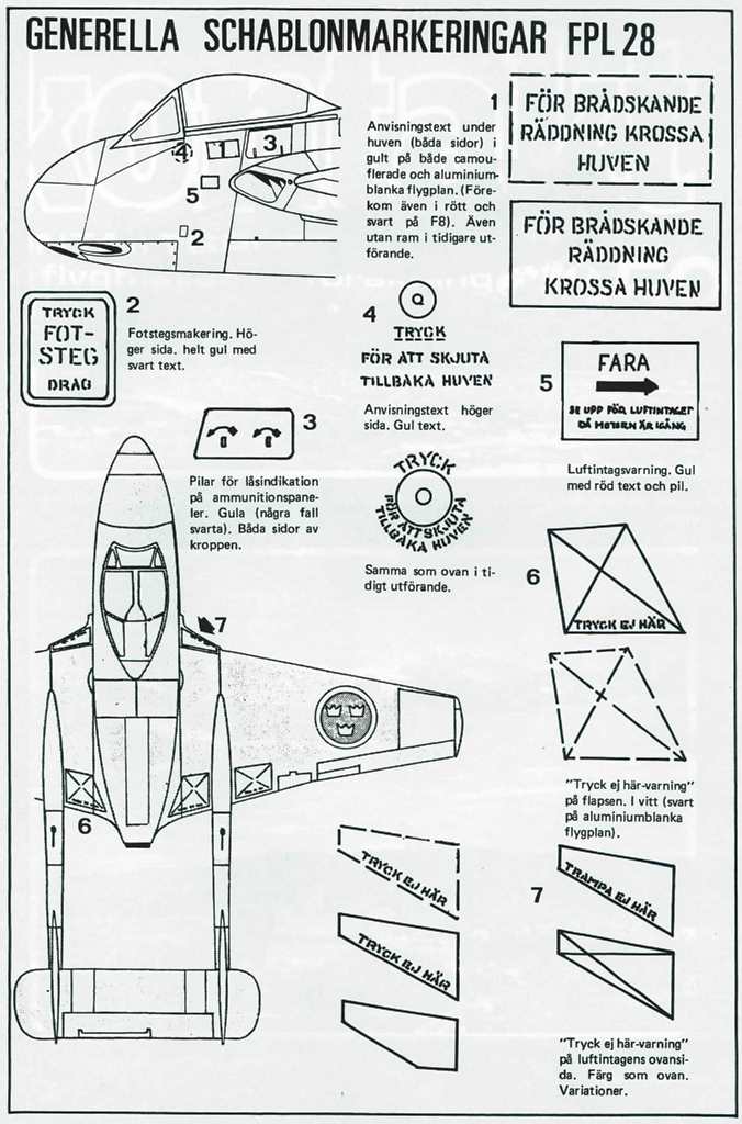 Efter ommålning i helaluminiumschemat målades siffrorna och anvisningstexterna i svart. Från 1964 infördes allmänt inom Flygvapnet en ny enhetstyp av siffror vilka delvis kom att införas på 28:an. Dessa nya siffror påmålades i samband med att flygplanen genomgick H-översyn, vilket innebar att endast ett antal 28C kom att erhålla den nya siffertypen.
