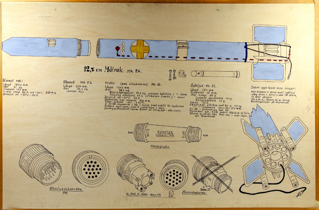 - 8 st 63 mm övningsraket ÖRAK på balk 1-4.