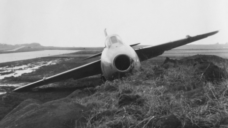 Vid utbrytning slog ff till spärrventilen. Strax innan sista insvängningen, märkte han att motorn stannat. Landningen fortsatte normalt och ff nödutfällde landstället. Höger huvudställ gick inte ut varför fpl kasade av banan och stoppade mot en jordvall.