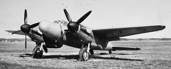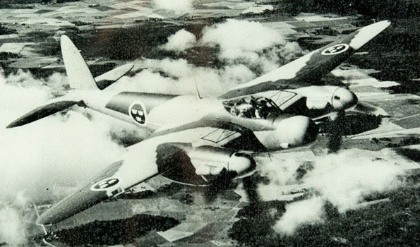 DH Mosquito hör utan tvekan till andra världskrigets legendariska flygplanstyper. Flygplanet föddes på ritbordet hos De Havilland sommaren 1938, och var då avsett som ett snabbt bombplan med två mans besättning, utan defensiv beväpning. Engelska Air Ministry visade till en början ett ljumt intresse för De Havillands projekt, men i och med det tyska angreppet på England, Battle of Britain, ändrades denna inställning radikalt. Redan dessförinnan hade man hos De Havilland på eget bevåg startat utvecklingen av en jaktversion av Mosquito, med fyra automatkanoner inbyggda i nosens undre del, som sedermera skulle visa sig vara ett lyckokast för det engelska flygvapnet.