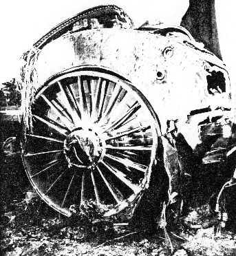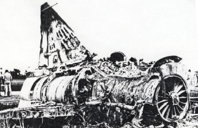 Kanonen har härvid ej utvecklat någon större dragkraft. Den kraftigt deformerade och sönderslagna raketstolen hamnade, vid framkroppens söndring, omedelbart vid sidan av denna och ff separerade ytterligare en mindre bit. Vid den efterföljande kraftiga branden kring stolresterna, tände raketmotorn varvid de sammanhängande stolresterna förflyttades ca 35 m i sidled.