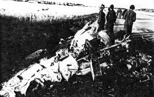 Vid nedslaget, som skedde på en veteåker ca 2,5 m efter start, var fpl bankat något åt vänster, anfallsvinkel ca 27 grader och farten ca 210 km/tim. Från nedslagsplatsen fortsatte fpl under sönderdelning en sträcka av 116 m. Fram- och bakkropp, som separerades från varandra, passerade över riksväg E4. Framkroppen demolerades svårt och fattade eld. Branden släcktes efter snabb insats av räddningspersonalen.