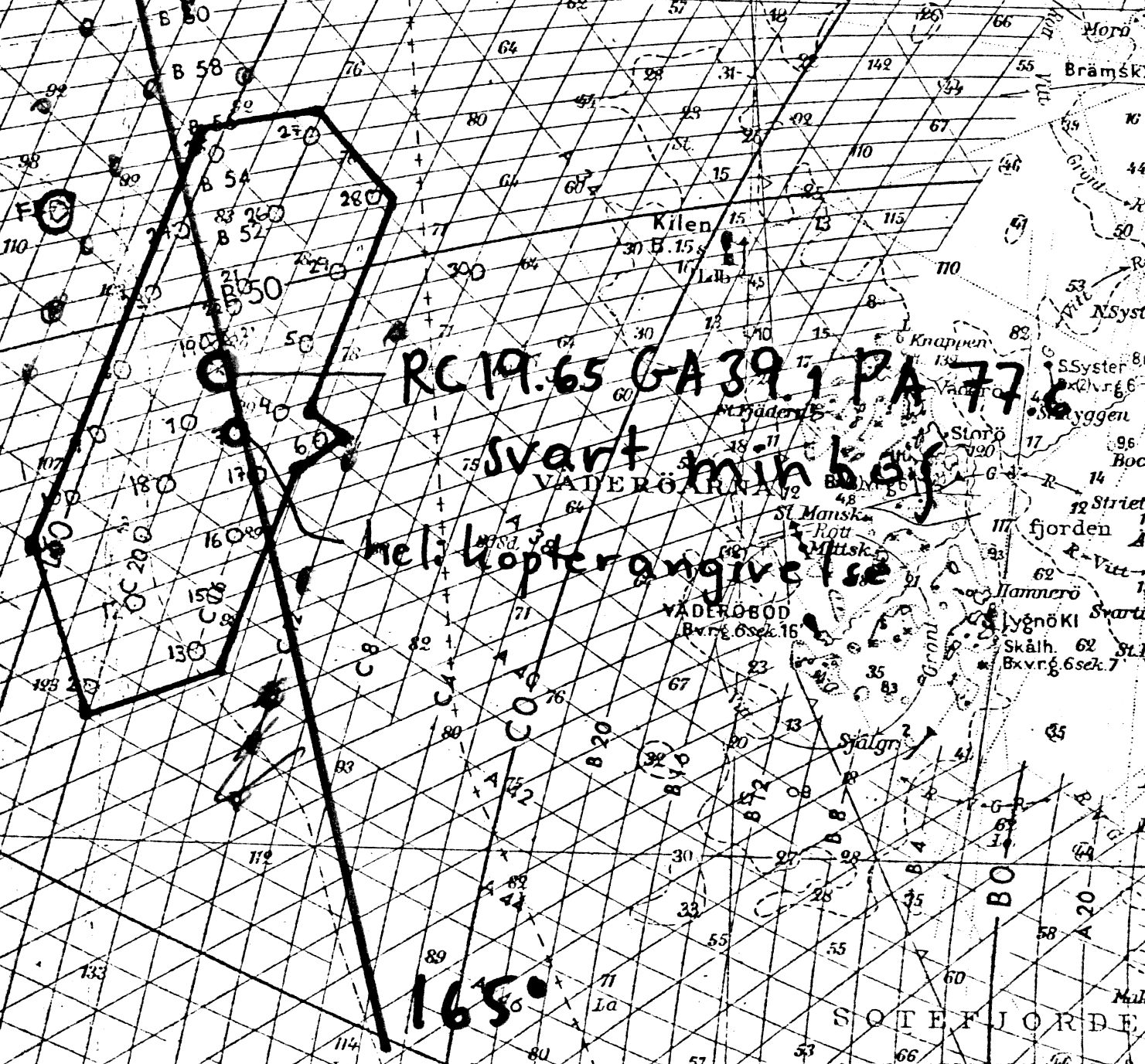 I fortsättningen torde föraren liksom tidigare under flygningen ha följt för denna gällande färdplan och för övningen gällande order. Detta innebär att han sannolikt passerade en brytpunkt (BF) 15 km sydväst om Ursholmen, varifrån han på sydsydostlig kurs under visuella väderförhållanden och på flyghöjd 50, momentant 20 m, ökade farten till M 0,9. Denna fart torde han ha uppnått efter en ca 9 km lång accelerationssträcka. Flygplanet observerades omkring kl 15.15 från fiskebåtar, när det i planflykt på 30-50 meters höjd passerade ca 10 km väster om Väderöarna (ca 22 km sydsydost om BF) på 165 gr kurs.