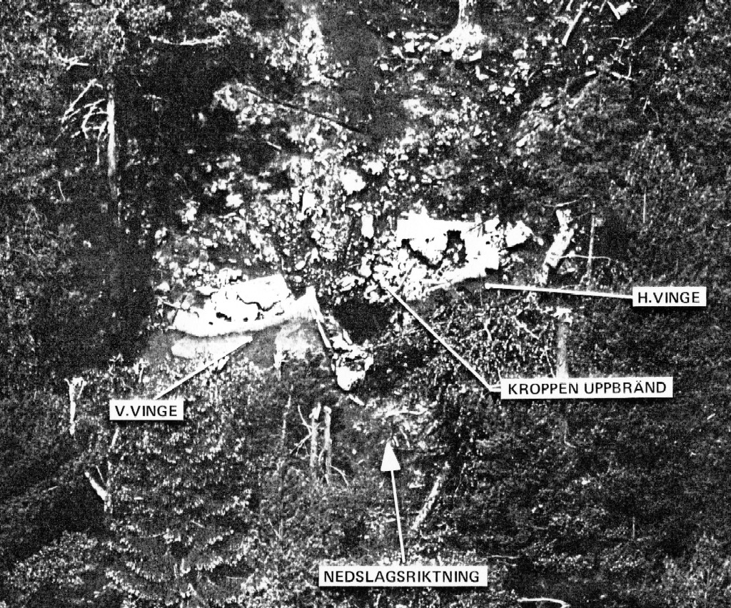 Vid flygplanets nedslag, som ägde rum i bergig skogsterräng, spreds brinnande flygplansdelar inom ett relativt stort område varvid skogen antändes. Skogsbranden var svårbekämpad på grund av den oländiga terrängen och rådande torka. Kommunens brandkår (Sorunda och Nynäshamn) fick dock efter hand branden under kontroll. Det brandskadade området blev ungefär en halv kvadratkilometer stort.