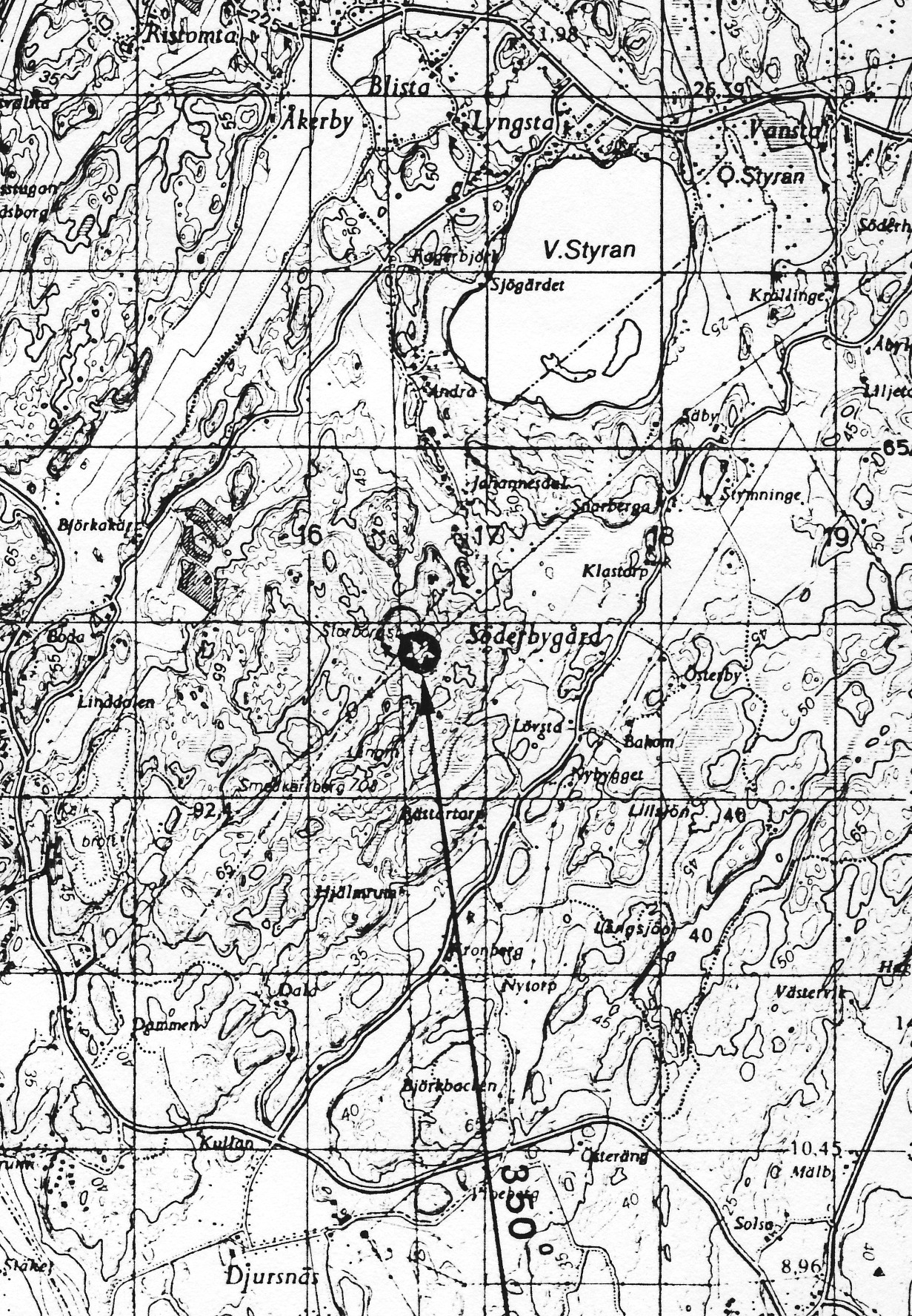 När tregruppen hade intagit långflank vänster i anfallsgruppering och befann sig någon mil söder om Landsort, hörde tvåan plötsligt en kraftig smäll (”kanonskott”) i flygplanet följd av två eller tre mindre kraftiga smällar. Smällarna bedömde han vara pumpsmällar (oaktat han tidigare ej upplevt pumpning).