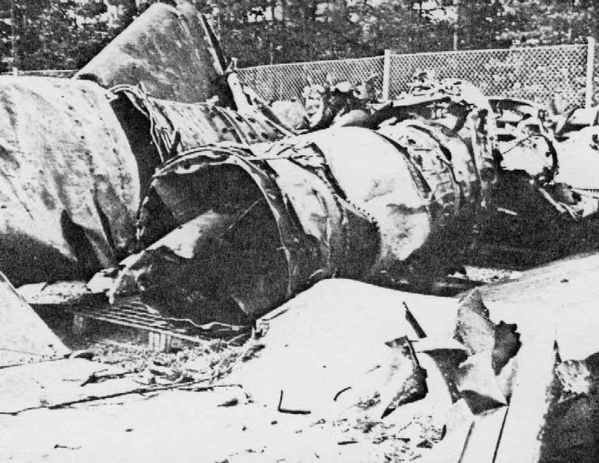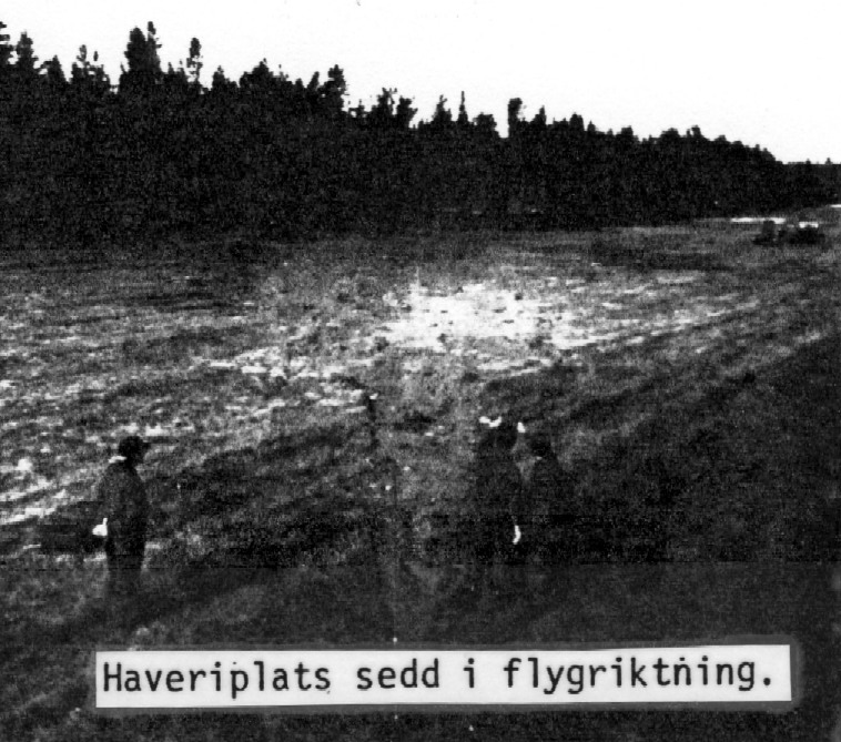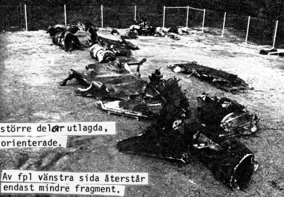 Fpl-delar spreds i en från banan ca 40 gr åt vänster divergerande riktning. Brand uppstod i fpl-delar, intilliggande skogsterräng samt i en ”el-kiosk”, som träffades av fpl. Branden släcktes av flottiljens räddningsstyrka. Föraren har ej gjort något försök att skjuta ut sig.