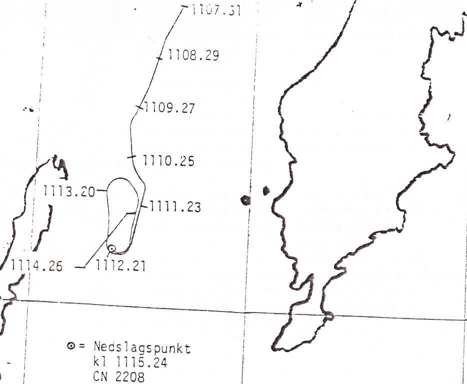 Klockan 11.16.42, tre minuter efter denna anmälan, saknade rrjal flygplanekot. Han bedömde läget för sista ekot till ca 25 km sydost Ölands södra udde.