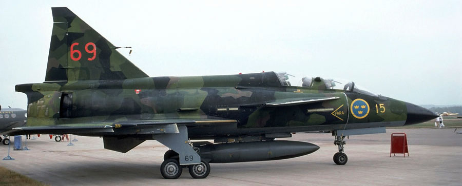 - Radarstörsändare G24 (från J 32E Lansen) vars antenn satt i nosen. Ett ”fönster” ovanpå/framtill på nosen (se bild ovan) tillät signalerna på S- och C-bandet att passera utan att dämpas för mycket.