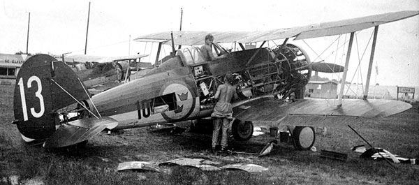 Fpl 243 märkt F8-13 efter att den förlorat propellern under flygning 1939-06-13. Foto: Okänd.
