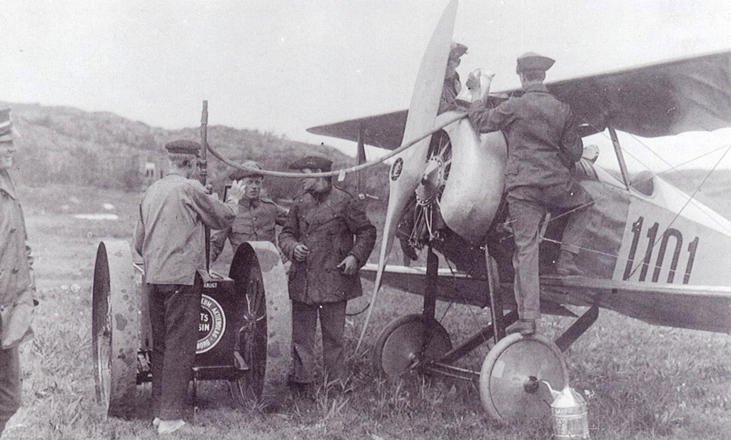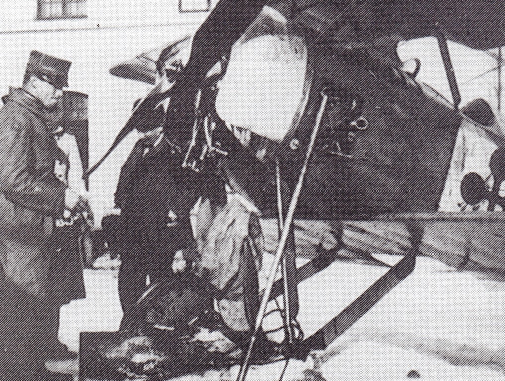 Tummelisa nr 1101 på nosen. Planet är märkt enligt de ”övergångsbestämmelser” som tillämpades en kort tid vid övergången till det nybildade Flygvapnet 1926. På kroppen vita kronor med svart bård och på (i detta fallet endast den ena!) vingen svarta kronor med vit bård! Foto: Se nedan.