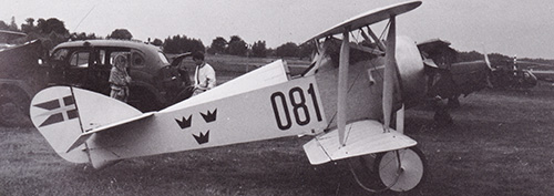 Inledningsvis (1920-26) målades nationalitetsbeteckningen, tre svarta kronor, direkt på duken i sex positioner. Flygplansnumren, 081-1109, målades i svarta siffror i hela kroppens höjd, nedanför och strax bakom sittbrunnen. Notera att endast udda nummer användes (ensitsiga flygplan)? Svensk tretungad flagga på sidorodret med spetsarna vända bakåt.