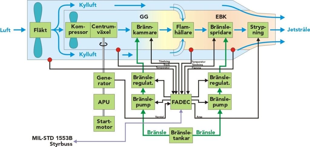 1996 började Volvo Aero (tidigare VFA) utveckla ett helt digitaliserat reglersystem som fick namnet FADEC (Full Authority Digital Engine Control). Men även här fanns ett mekaniskt system som backup (en enkel gasvajer). Många tillverkare använder sig av en tvåkanalig FADEC som säkerhet men Volvo Aero fortsätter använda både ett digitalt system (enkanalig FADEC) och ett mekaniskt system.
