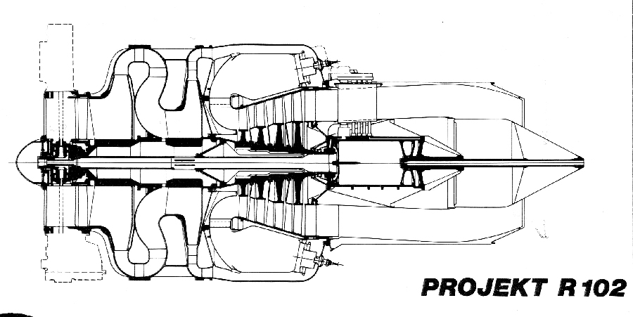 SFA:s projekt kallades R 102 och var en centrifugalkompressormotor. Den provkördes i januari 1947 och hade en dragkraft på 1.450 kp. En utvecklad motor med effekt 2.600 kp fick beteckningen R 104.