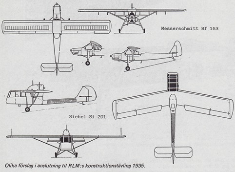 2) Siebel Si 201 hade ett äventyrligt utseende, som emellertid gav enastående siktförhållande. Till följd av några konstruktionssvagheter, som inte i tid kunde bemästras, blev Ernst Udets negativa uttalande efter en provflygning helt utslagsgivande. Si 201 kunde aldrig hävda sig i konkurrensen.