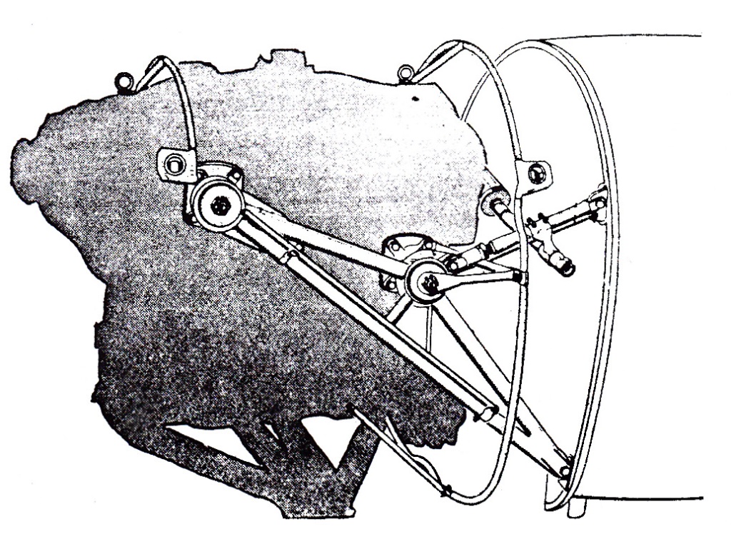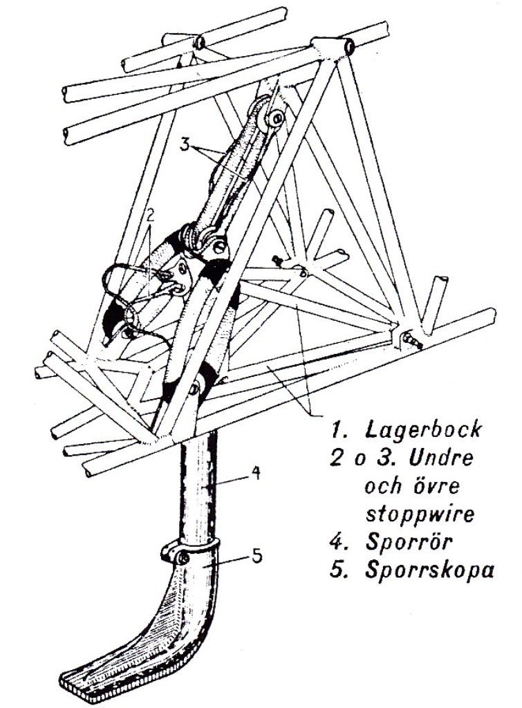 Sporrhjulinstallationen består av ett rör lagrat i en amortissörfjädrande bock. Röret är försett med sporrskopa, alt sporrhjul.