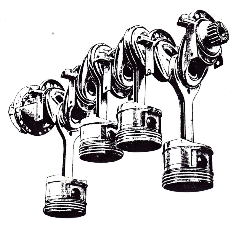 Vevaxeln är konstruerad och patenterad av dr Albert Hirth. Den är genom ett sinnrikt system delbar i 11 delar, vilket medger montering av odelade rullager (nållager) för huvud- och kolvstakslagren på vevaxeln.