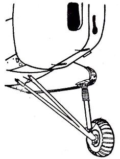 Trebensstället består av två stycken stötdämpare, höger och vänster V-stötta med hjulaxel samt mellanstycke.