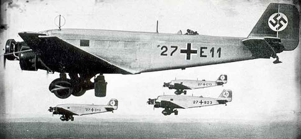 I juli 1936 sändes 20 st Ju 52/3mge ur Luftwaffe för att delta i det spanska inbördeskriget. Den första förlusten kom 4 november 1936 då ett flygplan sköts ner av sovjetiskt jaktflyg över Madrid. Under några veckor förlorades ytterligare sex flygplan.