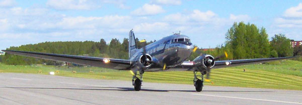 DC är en förkortning för ”Douglas Commercial” och Douglas DC-3 är ett av världens mest tillverkade transport- och passagerarflygplan. Den utvecklades från DC-2 som ett passagerar- och posttransportflygplan. Prototypen till DC-3 flög redan 1935-12-17 med Douglas chefsprovflygare Carl Cover vid spakarna.