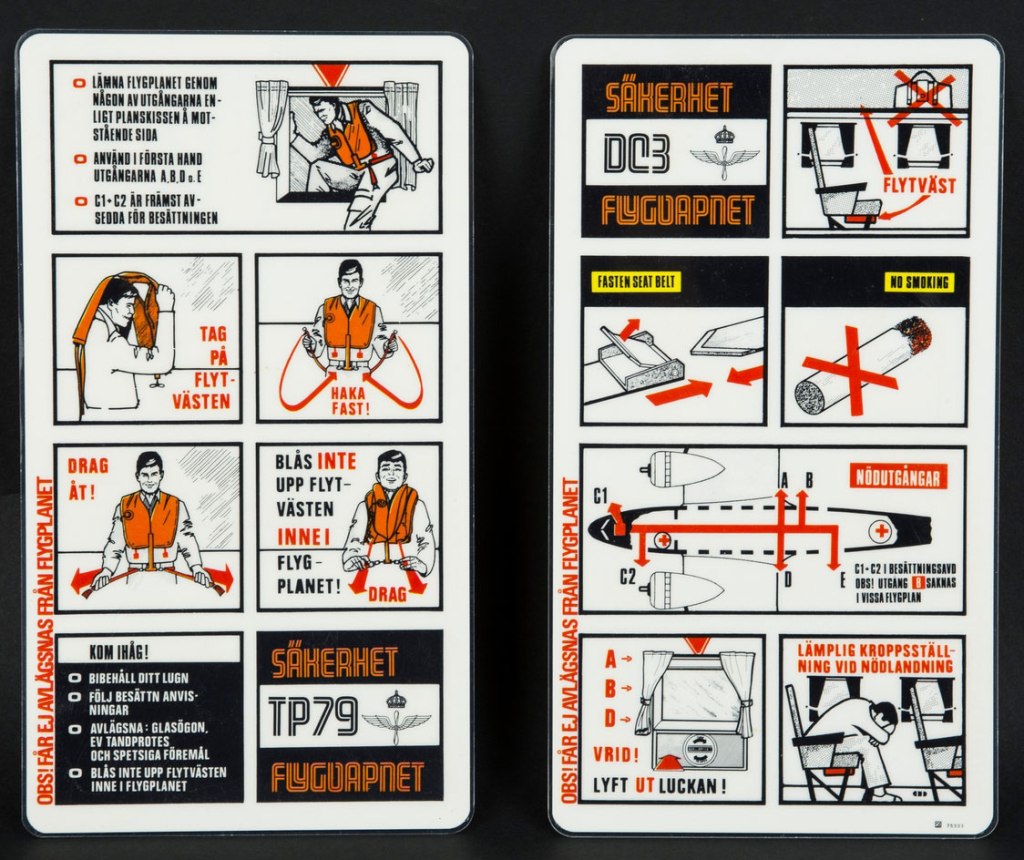 - Färdmekanikern (flygsignalisten) skall tillse (vid nödlandning på vatten) att samtliga ha flytvästarna påtagna samt att påminna om att dessa icke få blåsas upp före landningen.