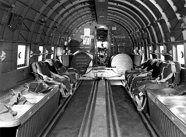 Längst bak i kabinen, på vänster sida, fanns lastrumsdörrarna: En främre och en bakre dörrhalva. Vid i- och urstigning användes normalt den främre lastrumsdörren som även hade en fallskärmshoppardörr infälld och som kunde lyftas in i kabinen. Öppningen ”nöddörren” kunde då användas vid nödurstigning i luften eller på mark/vatten och det fanns även en trappstege som kunde monteras i dörröppningen.